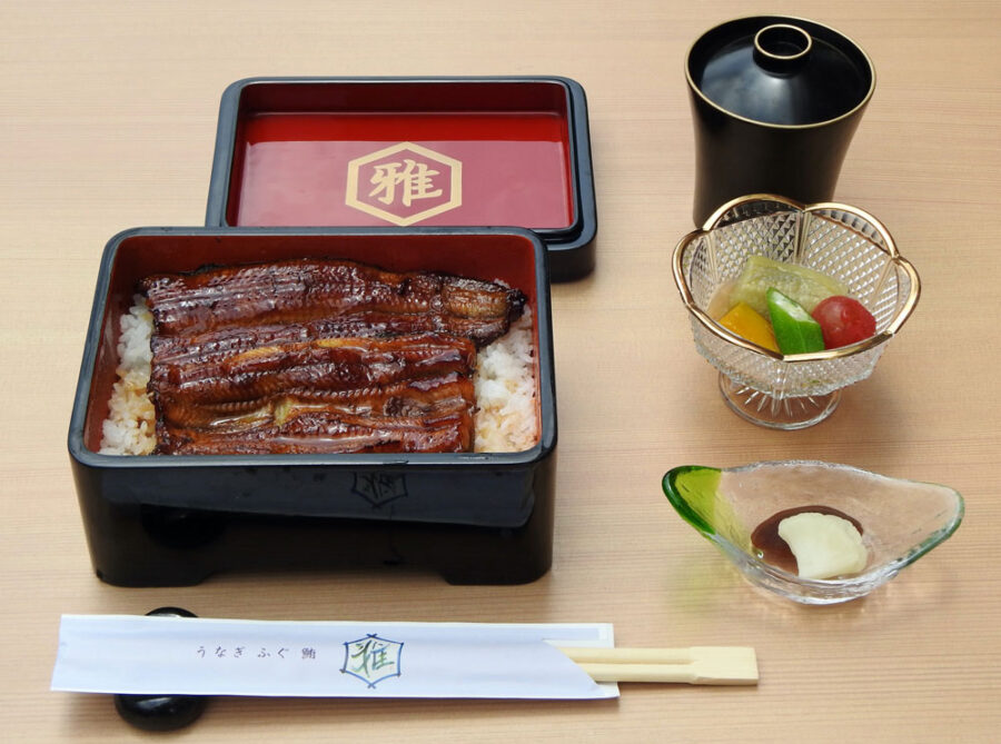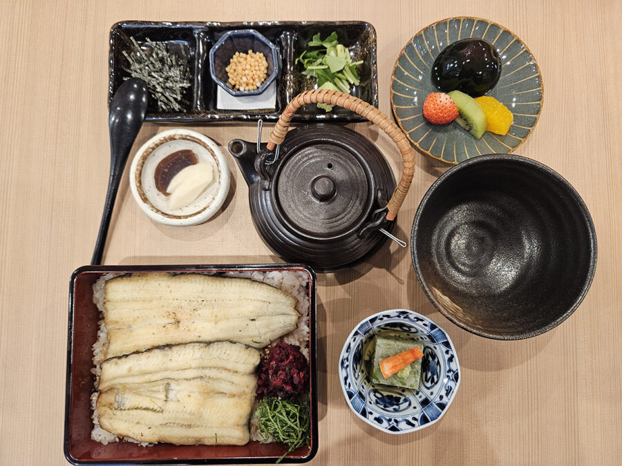 白焼き重:茶出汁、小鉢、香の物、水菓子